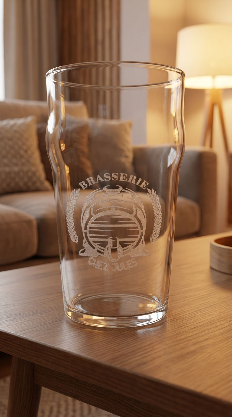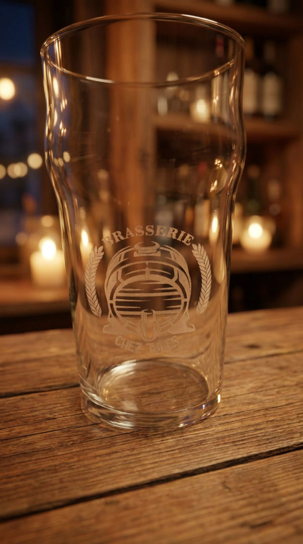 Notre configurateur en ligne vous permet de réaliser une personnalisation sur le verre. Importer nos illustrations comme les badges. Vous pouvez ainsi apposer votre prénom ou votre date de naissance pour une personnalisation unique. La technique de gravure avec le laser circulaire vous permet une personnalisation sur une grande partie du verre.